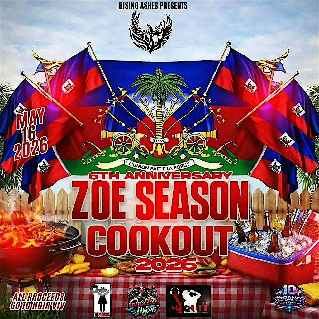" ZOE SEASON COOKOUT" not just a celebration but a reminder for us to celebrate the gains and loss of our Haitian Culture. Uplifting the 3rd largest populated state w/ Haitians and continue to spread the community with knowledge food drinks and good vybz!!! All proceeds of this event will be able to provide support towards the current work of supporting both existing and new arrivals in the Haitian Community.