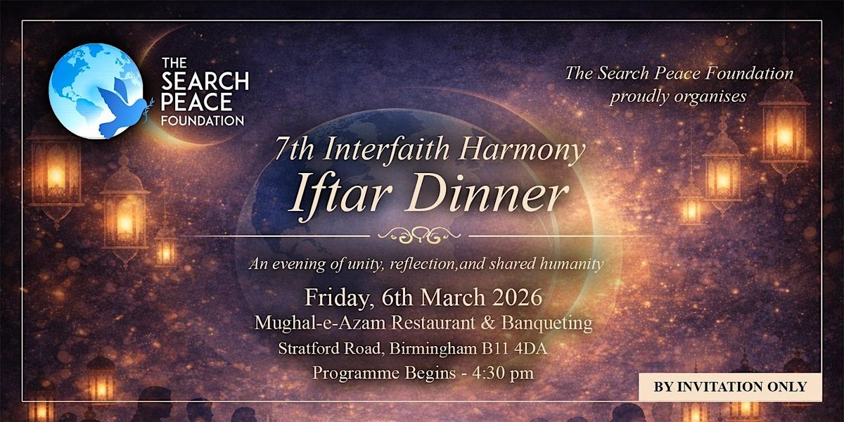 The Search Peace Foundation warmly invites distinguished guests to the 7th Interfaith Harmony Iftar Dinner, a special evening dedicated to fostering unity, mutual respect, and shared reflection among diverse communities.