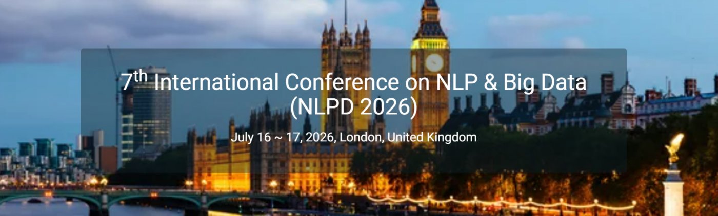 7th International Conference on NLP & Big Data (NLPD 2026) will provide an excellent international forum for sharing knowledge and results in theory, methodology and applications of Natural Language Computing and Big data.