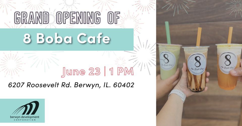 Love Boba? Come out for 8 Boba Cafe's Grand Opening event!If you've been hoping for a cool boba spot in Berwyn -- the wait is now over! 8 Boba Cafe has an awesome space to hang out, have some boba, try their bubble waffles in. Come help celebrate their opening with a ribbon cutting on June 23rd at 1pm with us. We hope to see you there!