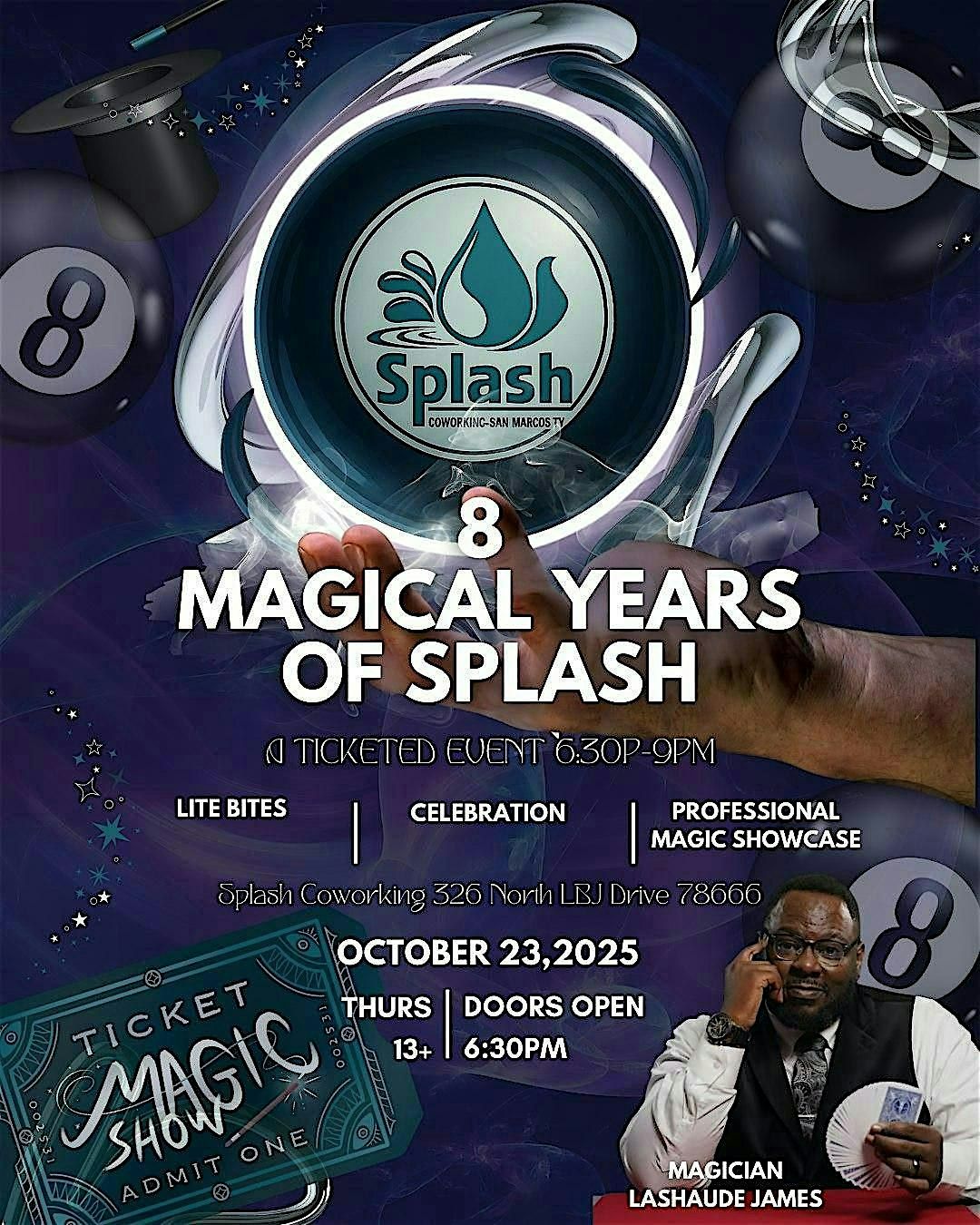 Info: Be amazed by LaShaude James in a 45-minute show crafted exclusively for Splash’s 8th anniversary. Laugh, wonder, and share moments you’ll remember long after the night ends.