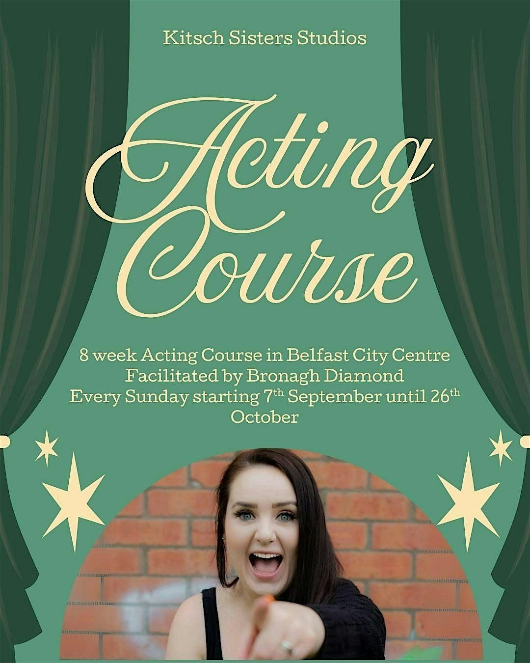 Come join us for Acting Classes at Kitsch Sisters Studio every Sunday for 2 months with Bronagh Diamond! Our classes cater to all levels. Learn from an experienced professional come in a fun and supportive environment. Sharpen your skills, build confidence, and unleash your creativity. Don't miss out on this opportunity to hone your craft and meet fellow aspiring actors.