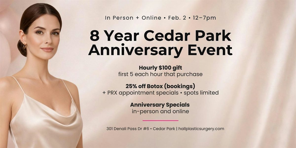 We’re celebrating 8 years in Cedar Park and we want you with us either online, or in-person!