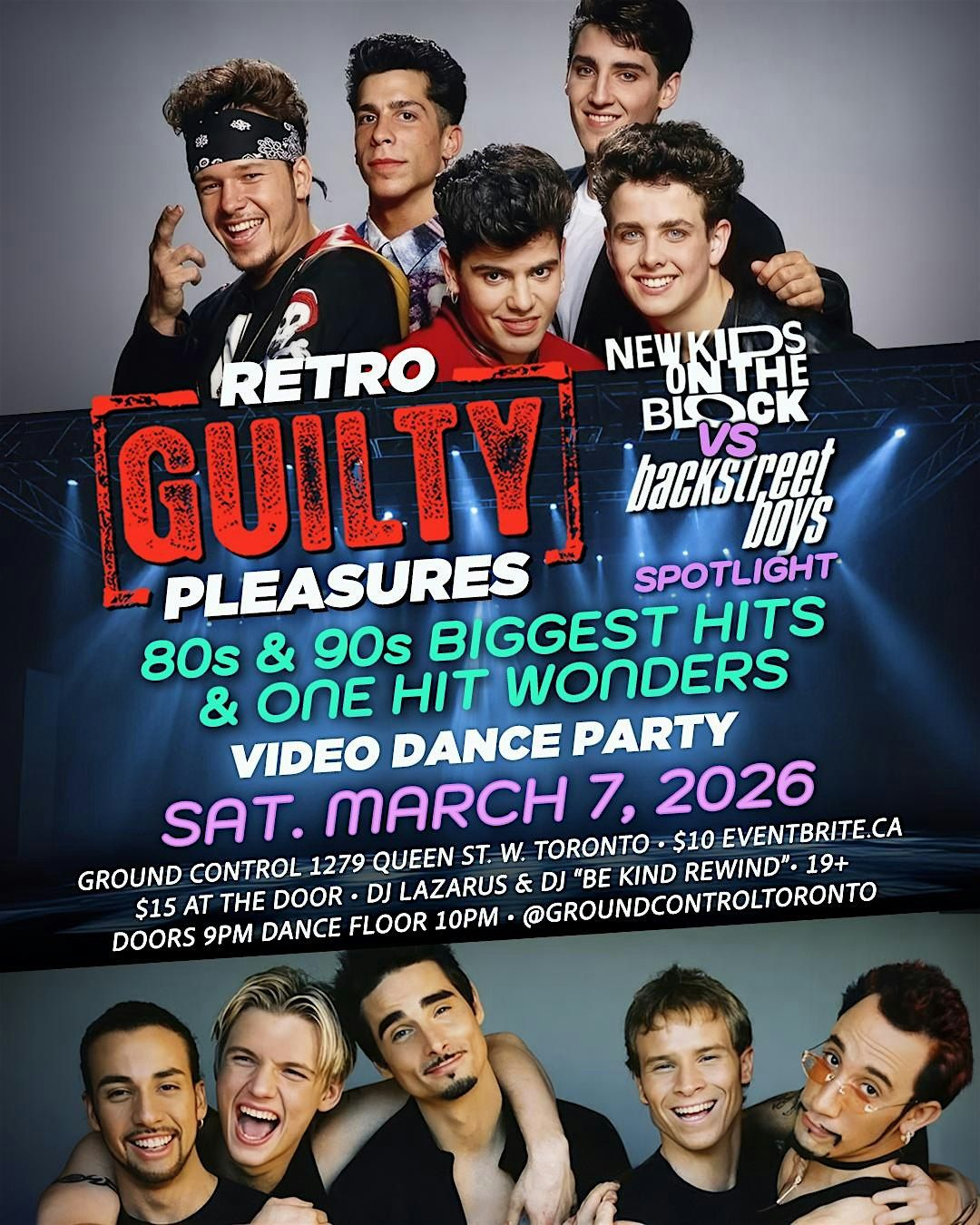 Sat March 7 - 80s & 90s Retro 'GUILTY' Pleasures Video Dance Party w/ New Kids On The Block vs Backstreet Boys Spotlight