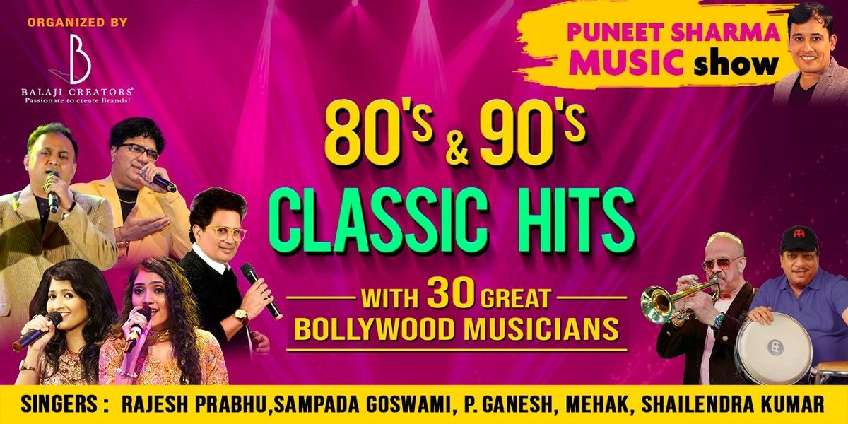 Balaji Creators, the leading organiser of grand musical concerts, hereby presents a musical concert titled 80’s & 90’s Classic Hits with 30 Great Musicians on Saturday, 30TH MAY 2026 at the Ravindra Natya Mandir Auditorium, Prabhadevi, Mumbai. The show is produced & directed by Puneet Sharma.