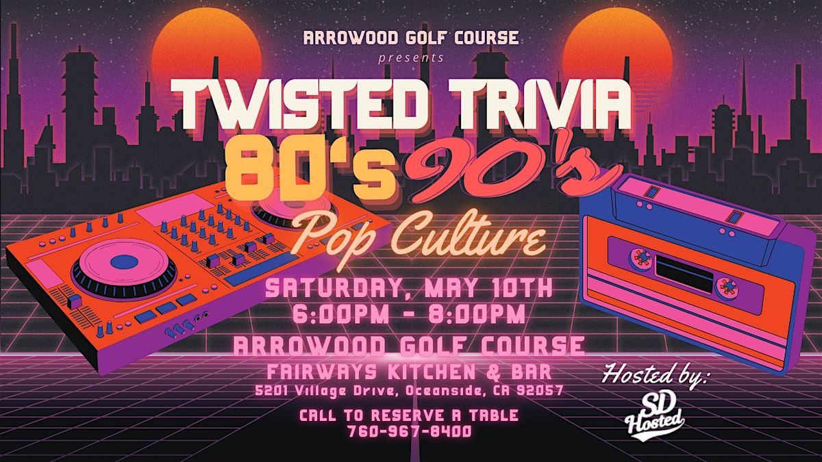 Get ready to rewind the clock and flex your retro brainpower! ?️? Join us on Friday, May 10th at 6 PM at the beautiful Arrowood Golf Course as San Diego’s Best Trivia Night comes to Oceanside for a night of fun and free twisted trivia!