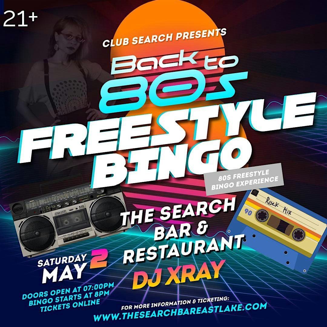 Get ready for “80s Freestyle Bingo"—a lively bingo night with all your 80s freestyle hits! Doors open at 7pm Bingo Starts at 8pmAbout this Event