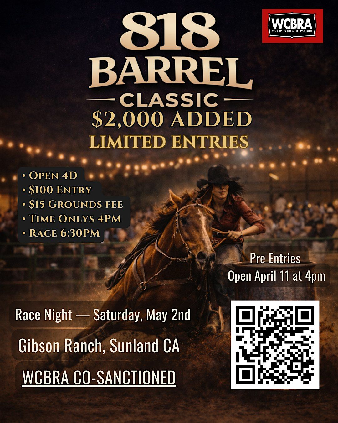 818 Barrel Classic is a capped, competitive barrel race built for riders who show up ready to run.