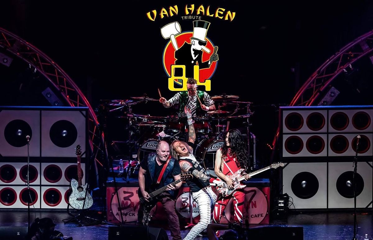 Faithfully recreating the sound, look, and energy of the original Van Halen lineup (1978-1984), 84 brings a jaw-droppingly authentic, passion filled show to packed venues and sold out crowds throughout the Southeast and beyond. 84's Dave, Eddie, Michael, and Alex work to bring you the most accurate concert experience possible. And it ain't no joke!