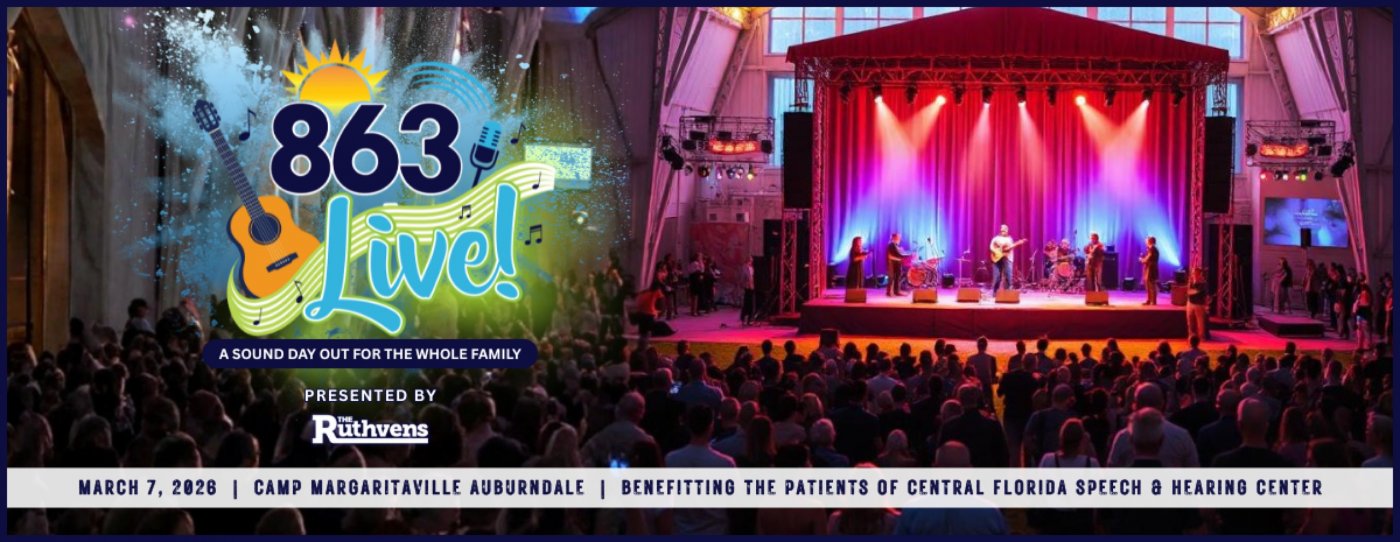Join Central Florida Speech and Hearing Center for 863 Live!, a high energy community concert at Camp Margaritaville Auburndale.