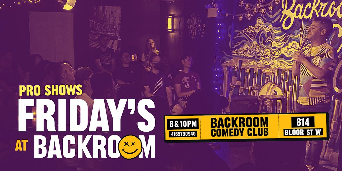 Dive into the comedic groove every Friday at 8 PM! Experience the funky vibes of Toronto's top comedians at Backroom Comedy Club. Join us for a night of uproarious laughter, good times, and the perfect start to your weekend. Secure your spot for an unforgettable evening filled with funky fun and stand-up brilliance!