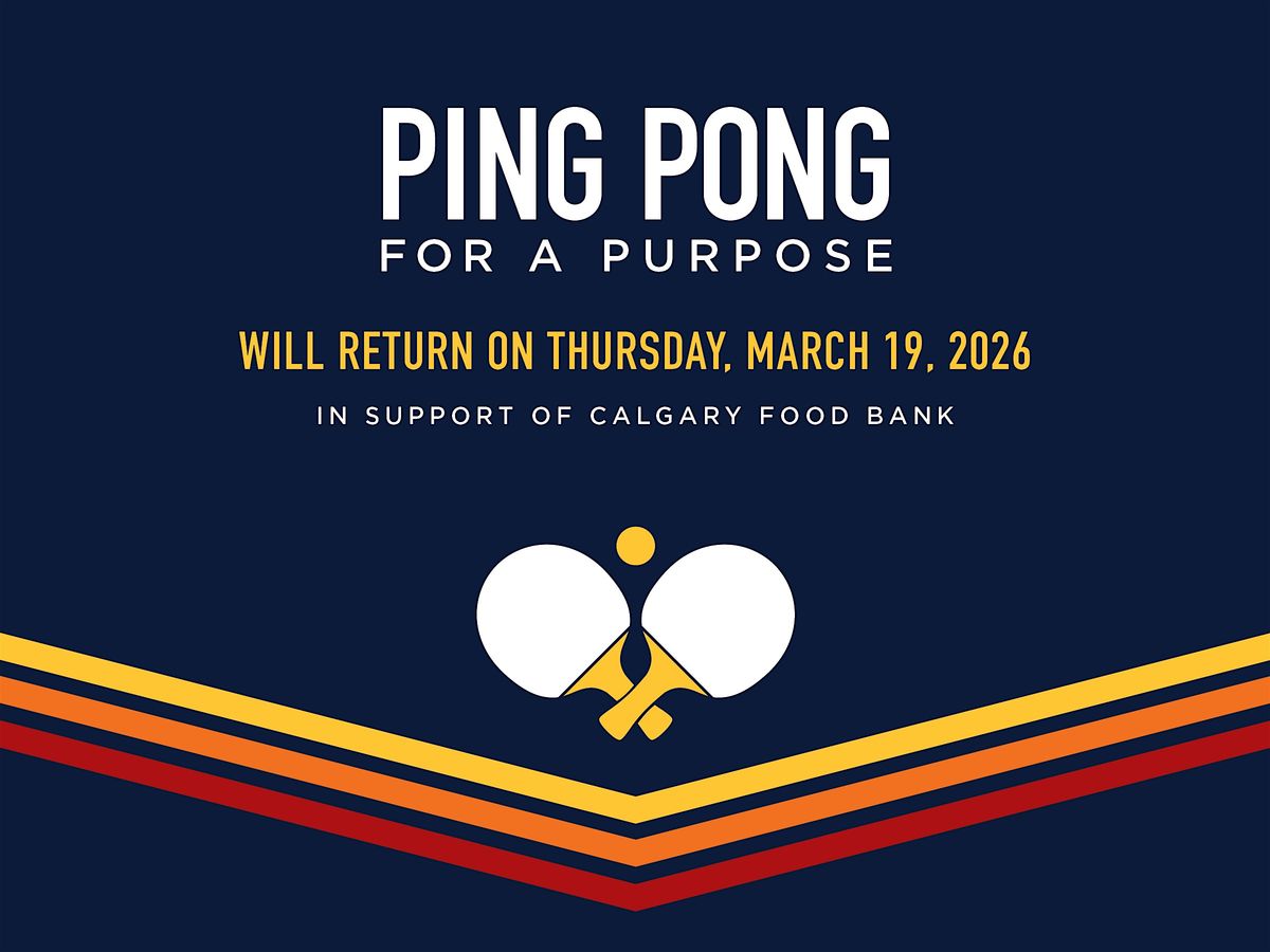 Welcome to the 8th Annual Ping Pong for a Purpose in support of the Calgary Food Bank. We are exicted to return to Brix + Barrel on Thursday, March 19th.