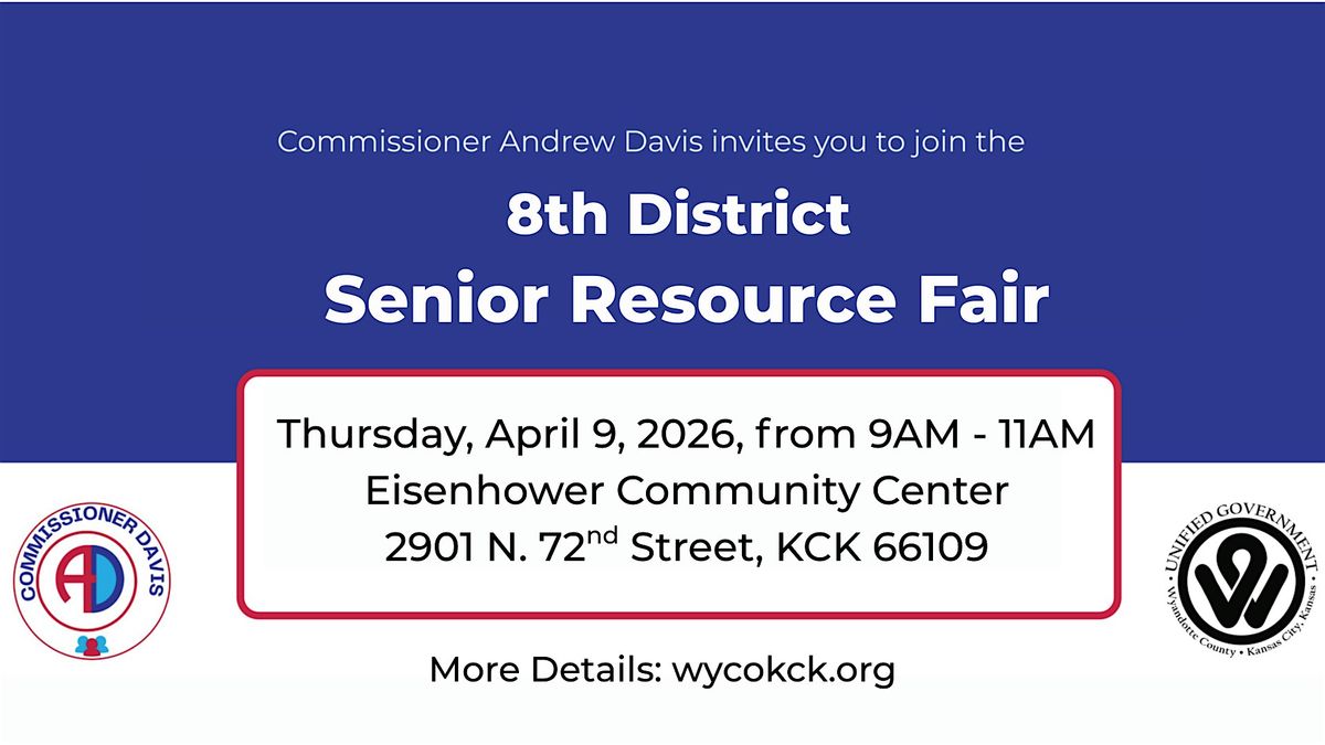 Come join us for the 8th District Senior Resource Fair at the Eisenhower Recreation Center! This is your chance to voice your concerns, ask questions, and connect with others in the community. Learn more about various programs and services - including filing your senior tax rebate. See you there!