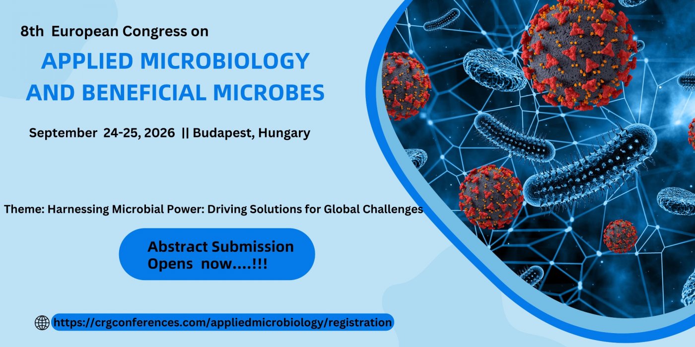 We are glad to announce the "8th European Congress on Applied Microbiology and Beneficial Microbes" organized by Coalesce Research Group which is going to be held on September 24-25 2026 in Budapest Hungary. Applied Microbiology 2026 has connected top applied research and early-stage innovations from universities labs and start-ups with industry end-users and prospectors. Efficiency of Microbiology has led to great and had a great environmental impact. This intriguing event has taken the initiative to gather the world class experts both from Academic and Industry in a common platform at Microbiology Conference to share their recent research finding to the world and enlighten other esteemed delegates on latest trends in the field of Microbiology ( Sessions ). We cordially invite all concerned people from all countries to join in our event at Rome Italy and make it successful by your participation. Why to Attend? Presenting your Organization’s Work on a Global Stage: Your organization’s expertise and knowledge will be showcased to key players in the field of Microbiology and will be a unique platform to increase your reputation within the sector. Why to Attend? Presenting your Organization’s Work on a Global Stage: Your organization’s expertise and knowledge will be showcased to key players in the field of Microbiology and will be a unique platform to increase your reputation within the sector.Why to Attend?