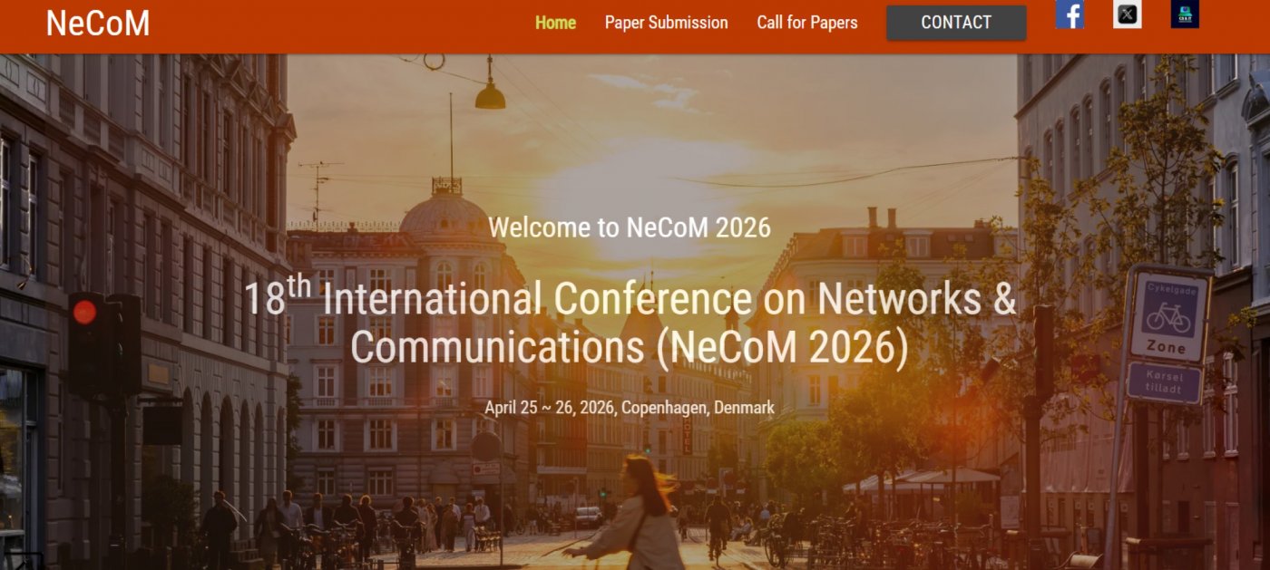 The 18th International Conference on Networks & Communications (NeCoM 2026) offers a premier global forum for presenting and discussing the latest advances in next generation networking and communication technologies. As networks evolve to support AI‑driven systems, immersive applications, cloud edge ecosystems, and ultra high speed wireless infrastructures, NeCoM 2026 seeks high impact research contributions spanning theoretical foundations, system design, and real world deployments.