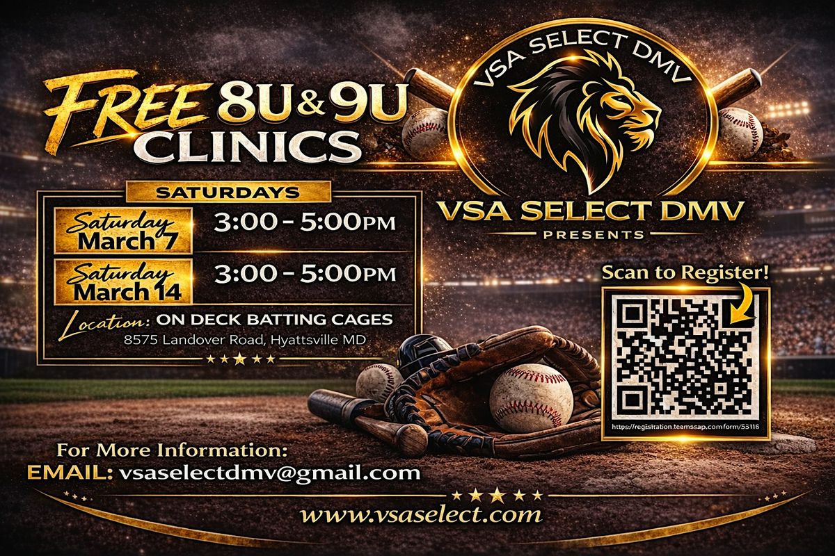 Get ready to step up your game with VSA Select DMV's 8u & 9U Baseball Clinics! These in-person sessions are perfect for young players eager to learn the basics and improve their skills in a fun, friendly environment. Coaches will guide you through batting, pitching, and fielding with lots of hands-on practice. Don’t miss out on the chance to play ball and make new friends!