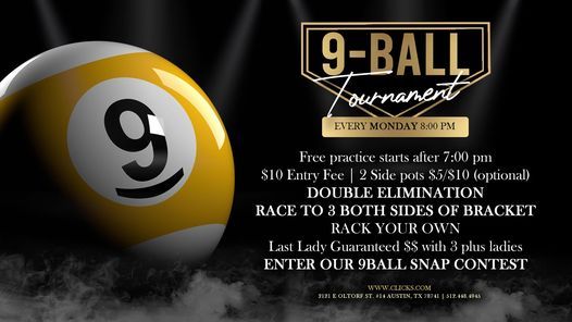Are you up for the challenge? Join us every Monday, 8 PM, and enter our 9-Ball Tournament! ? Take advantage of free practice that starts after 7 PM!