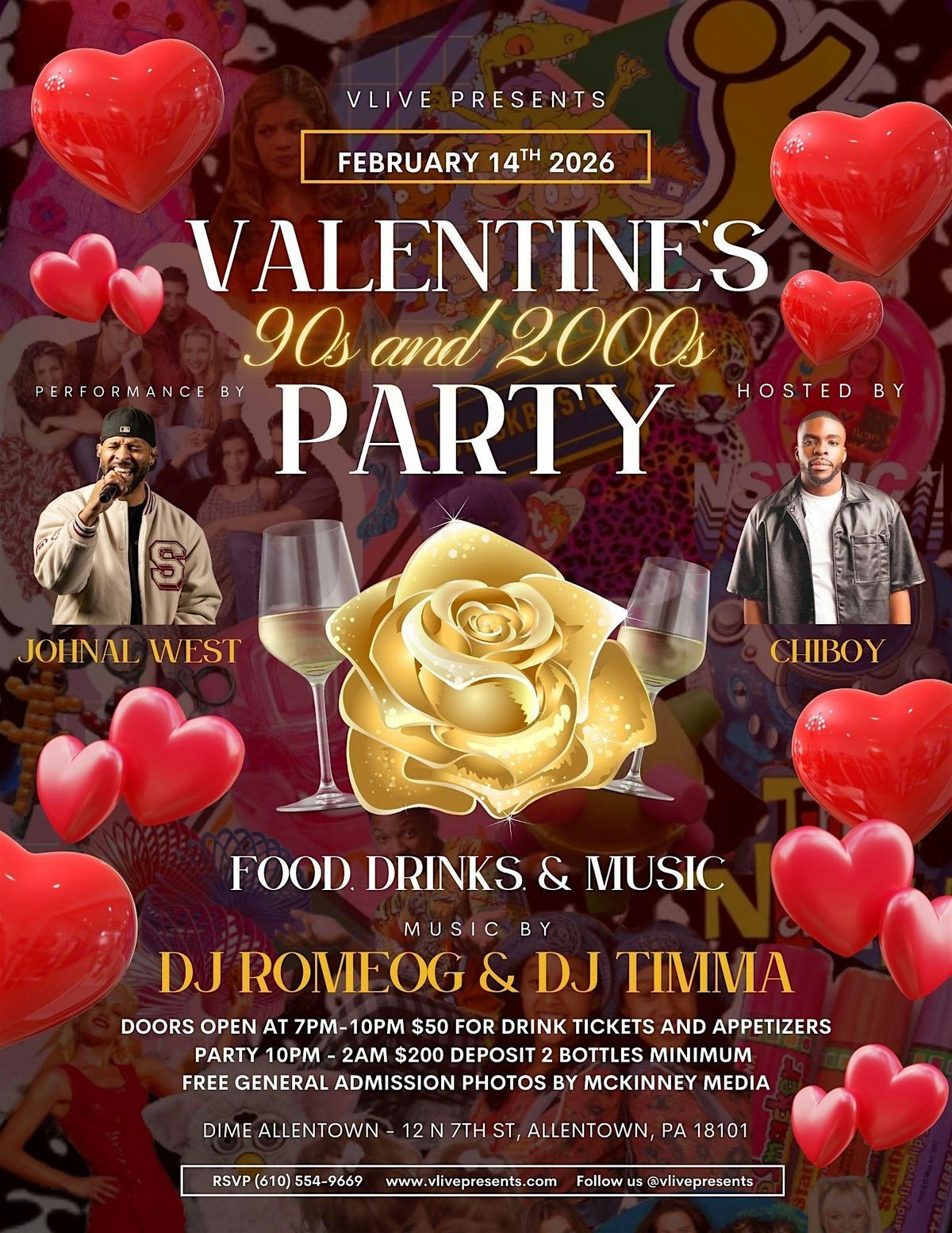 Get ready to relive the best vibes of the 90s and 2000s this Valentine’s Day! Join us in person for a night full of nostalgic tunes, good times, and great company. Whether you’re single or taken, it’s all about celebrating love and awesome memories from the decades that defined cool. Don’t miss out on the ultimate throwback party—it’s gonna be epic!