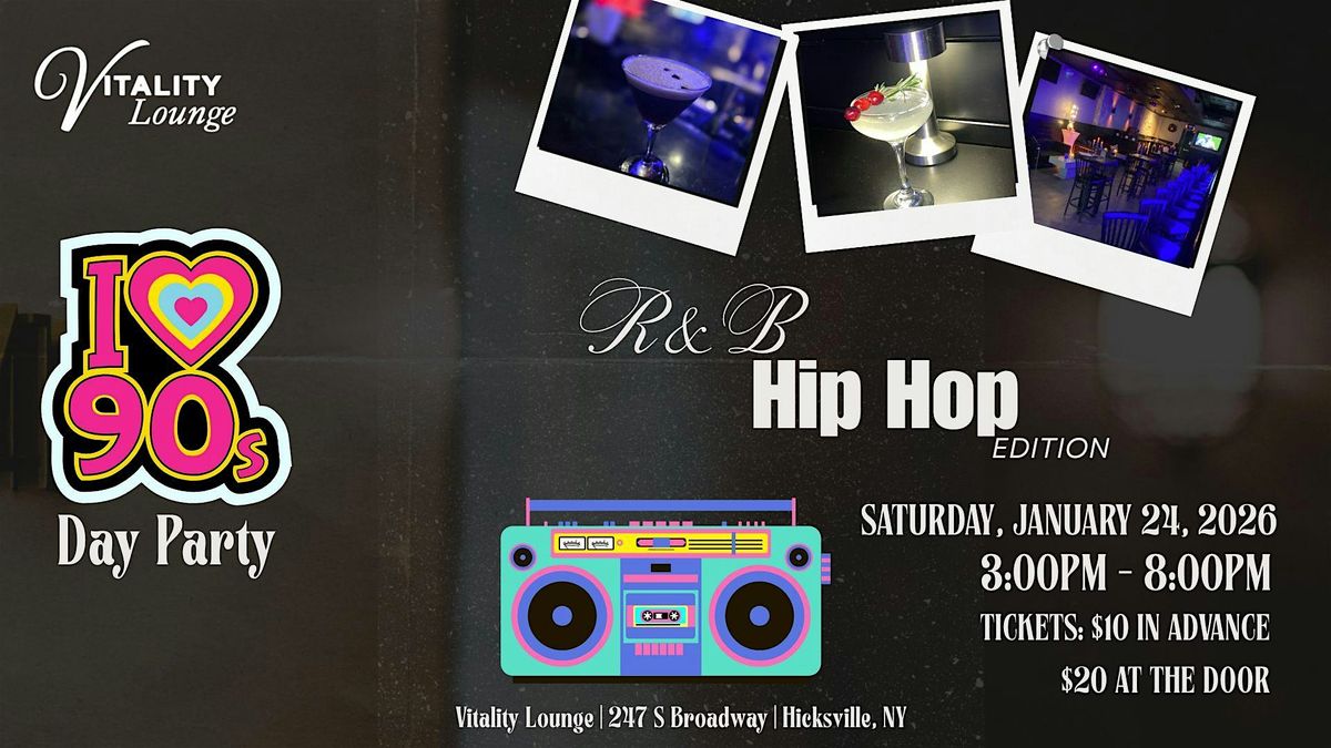 90s Day Party R&B & Hip-Hop Edition at Vitality Lounge! Jan 24 | 3–8PM. Throwback vibes, cocktails & classics. $10 tickets in advance.