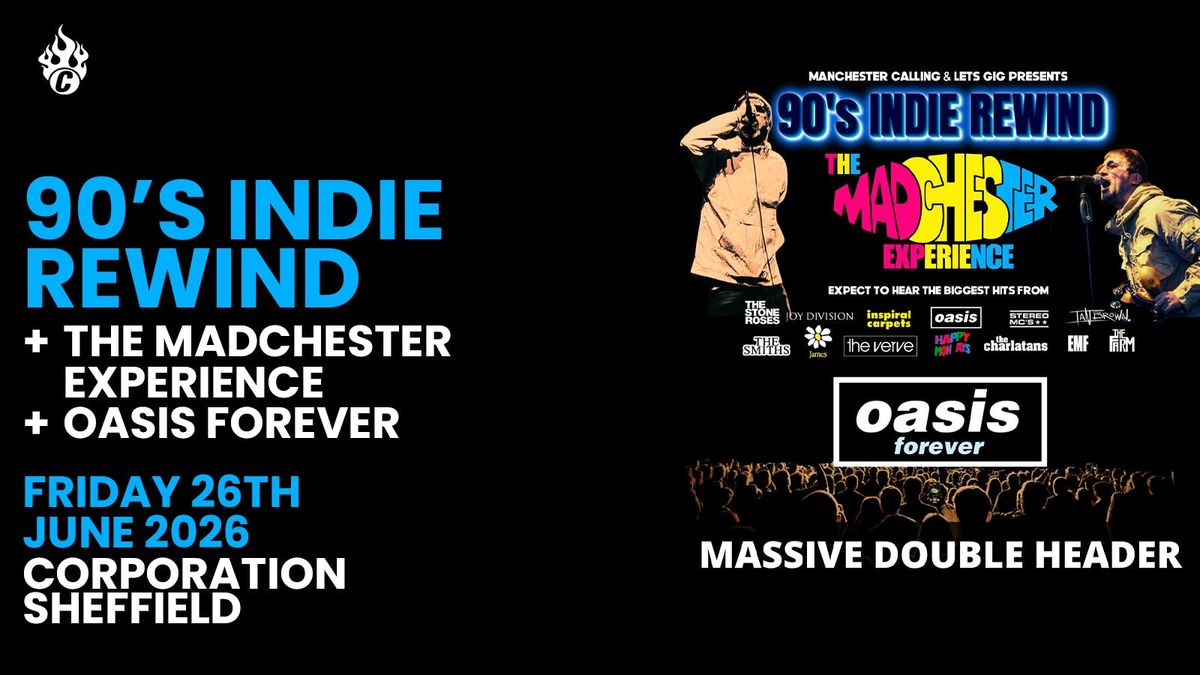 A huge double header lands in SHEFFIELD for one unforgettable night, bringing together two of the UK's finest tribute bands. The Madchester Experience and Oasis Forever.Soaring anthems, rolling grooves, arms-around-strangers and songs that take you right back to a golden era in music.Legendary songbooks played liveOne packed venue. A night you won't forget.Tickets are limited and moving fast.THE MADCHESTER EXPERIENCEStep into the baggy beat and swagger of Manchester's rave-soaked heyday! With electric energy and uncanny accuracy, these legends pay tribute to The Stone Roses, Happy Mondays, James, Joy Division and all things Madchester. Expect flares, funky vibes, and pure euphoria.