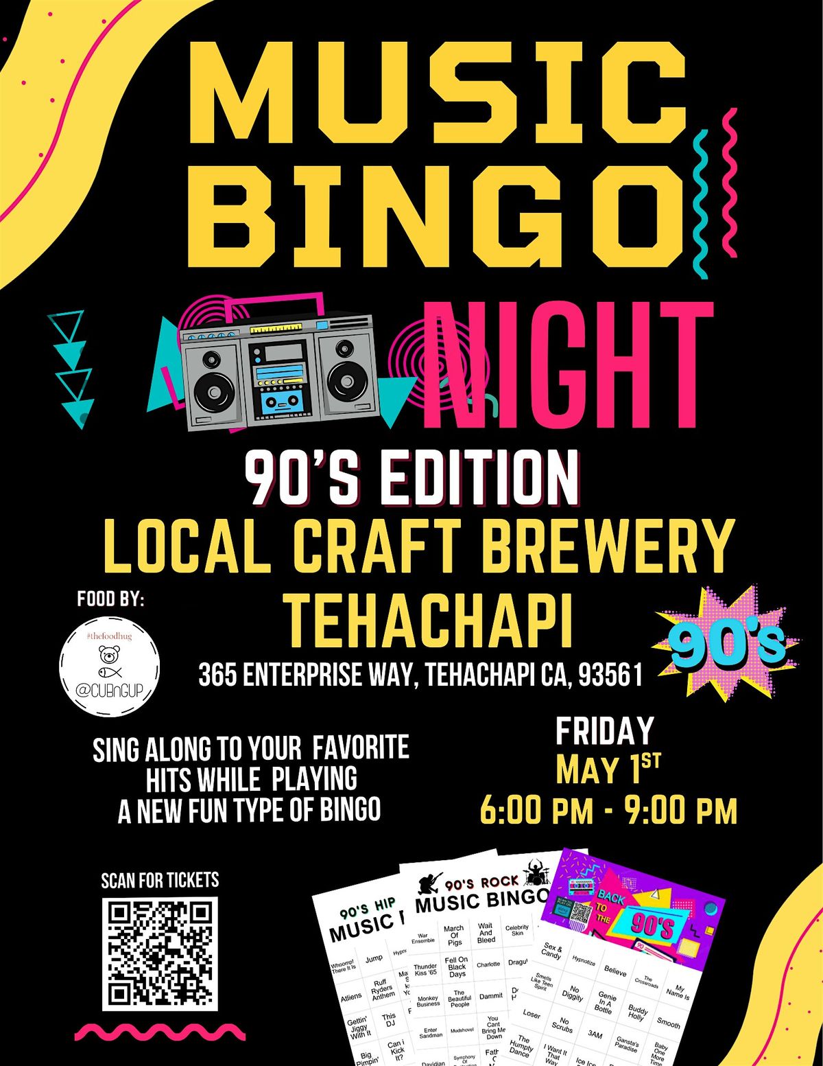 90's Music Bingo Night@ Local Craft Brewery Tehachapi