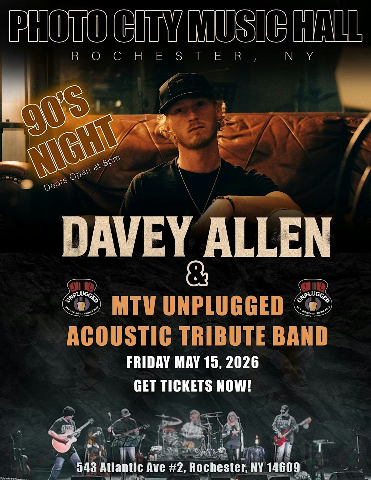 Step back into the golden era of flannel, frosted tips, and unforgettable anthems. 90’s Night brings the soundtrack of a generation to life with Davey Allen & Unplugged: A Tribute to MTV Unplugged, delivering high-energy live performances of the biggest hits that defined the decade. From grunge and alt-rock to pop classics and sing-along favorites, this is a full-throttle throwback packed with nostalgia, crowd energy, and nonstop vibes. Dust off your best 90’s fit and get ready to relive the music that ruled MTV. 🎸📺