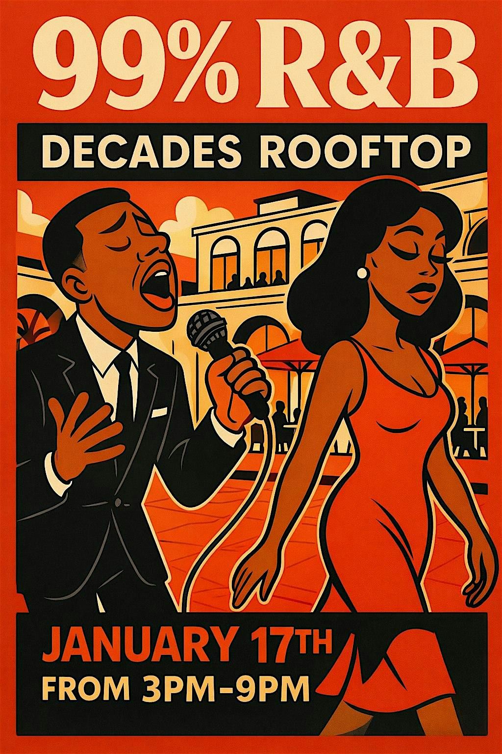 MLK Weekend, we’re bringing nothing but the vibes you love — welcome to 99% R&B, the ultimate day party at Decades Rooftop!