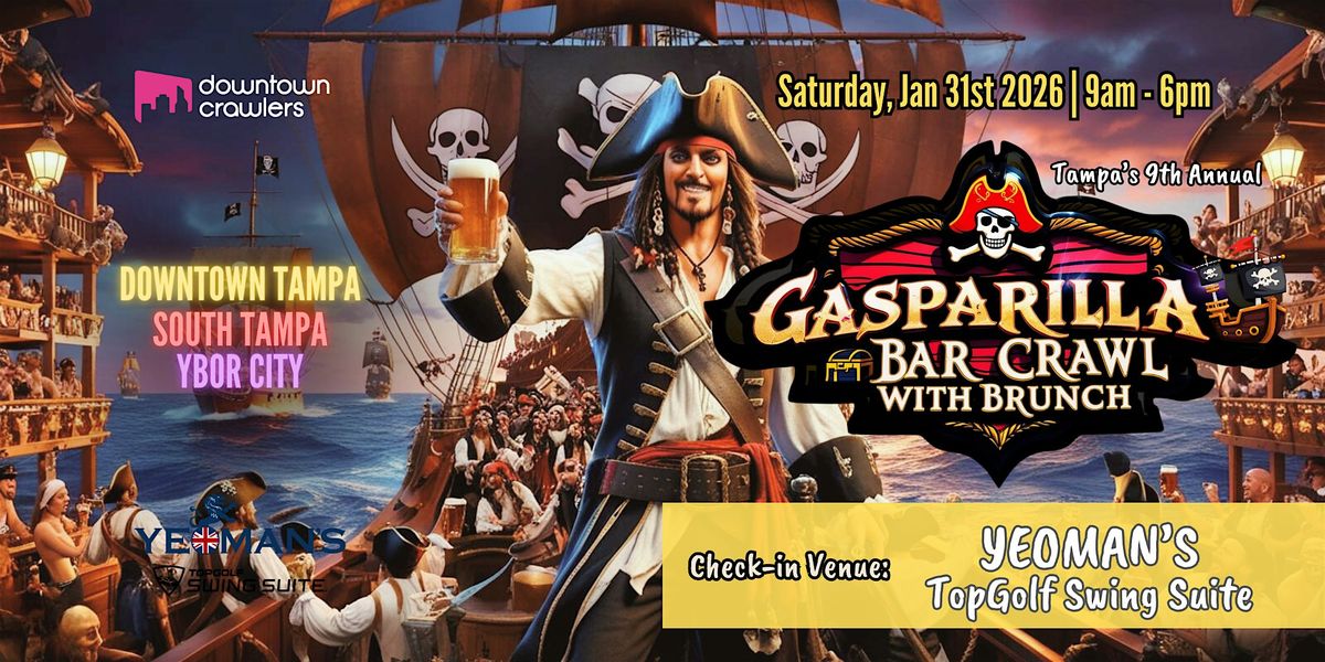 Join thousands of pirates for the 9th Annual Gasparilla Bar Crawl & Brunch, now bigger than ever with the debut of Gasparilla Pirates Cove β a brand-new, 2-day festival takeover in downtown Tampa (see details below).