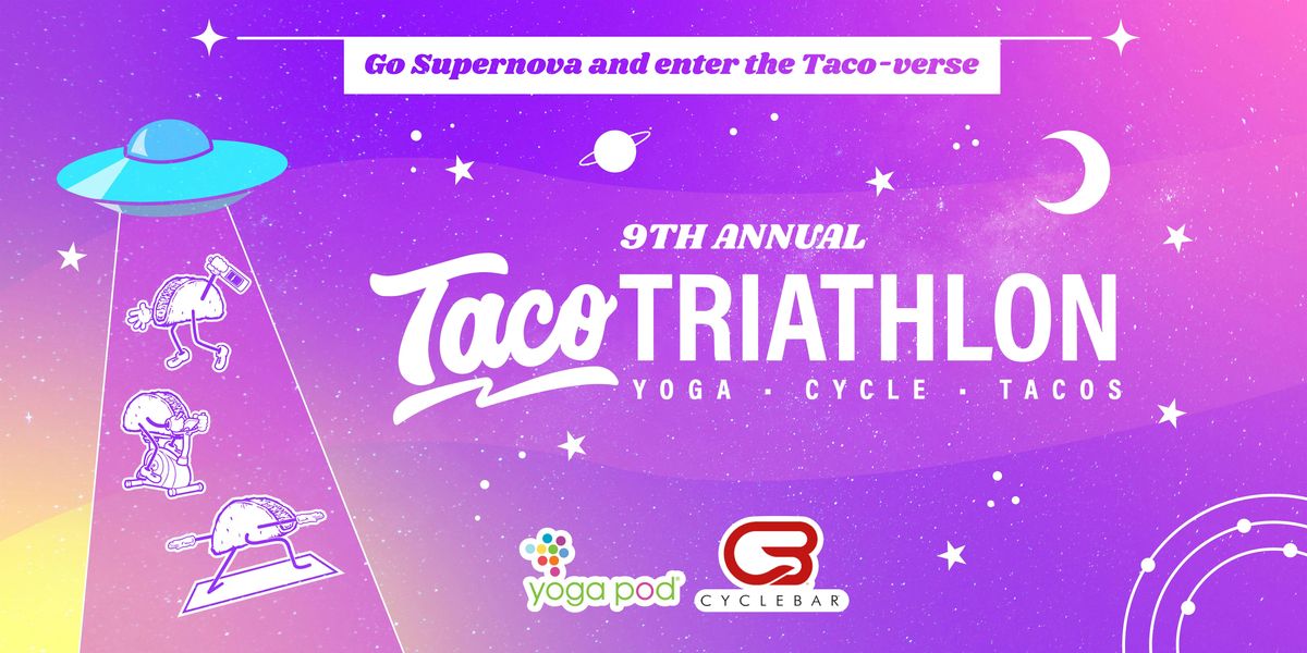 Can you complete a 45-minute cycle class, a 45-minute heated yoga class, and eat an entire taco? Let’s find out on Saturday, June 27, 2026!