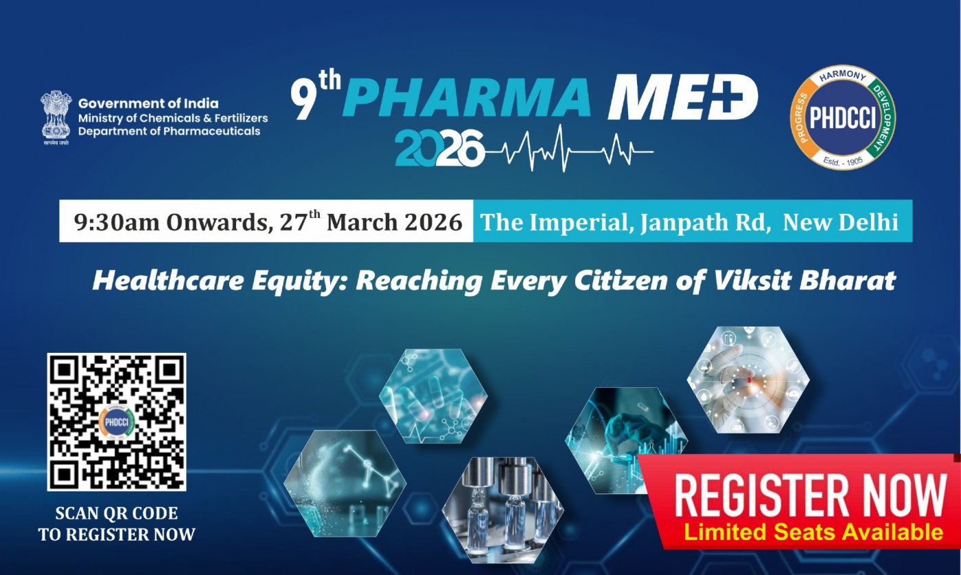 PHDCCI , in collaboration with the Department of Pharmaceuticals, Government of India , is organizing the 9th Pharma Med 2026 on 27th March 2026 at The Imperial, New Delhi.