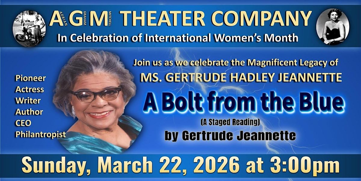 In Honor of Women’s International Women’s Month, AGM Theater Company is proud to present a Staged Reading of “ A Bolt from the Blue” by Gertrude Hadley Jeannette.