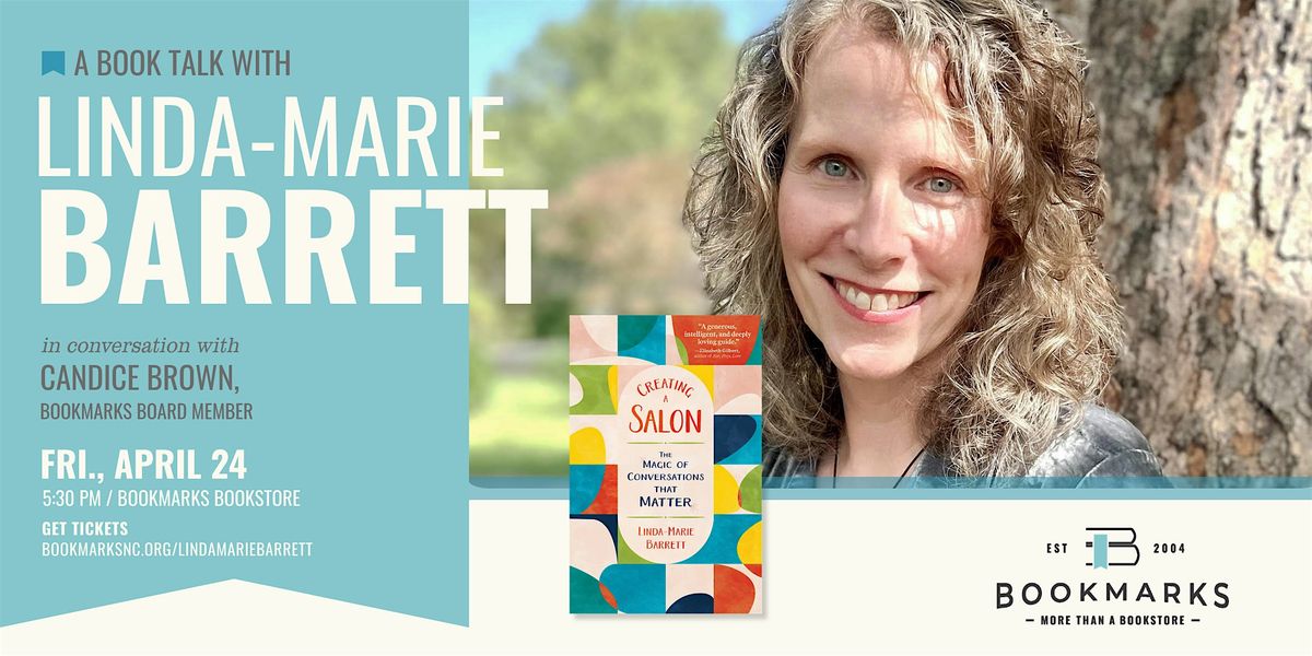 Have you ever wanted to host a salon but don't know where to start? Are you interested in leveling up your book club discussions? Come hear from Linda-Marie Barrett, author of Creating a Salon: The Magic of Conversations That Matter, in a free book talk at the bookstore with Candice Brown, Bookmarks Board Member. In Creating a Salon, Linda-Marie explains how hosting a salon can foster community and bring about meaningful conversations.