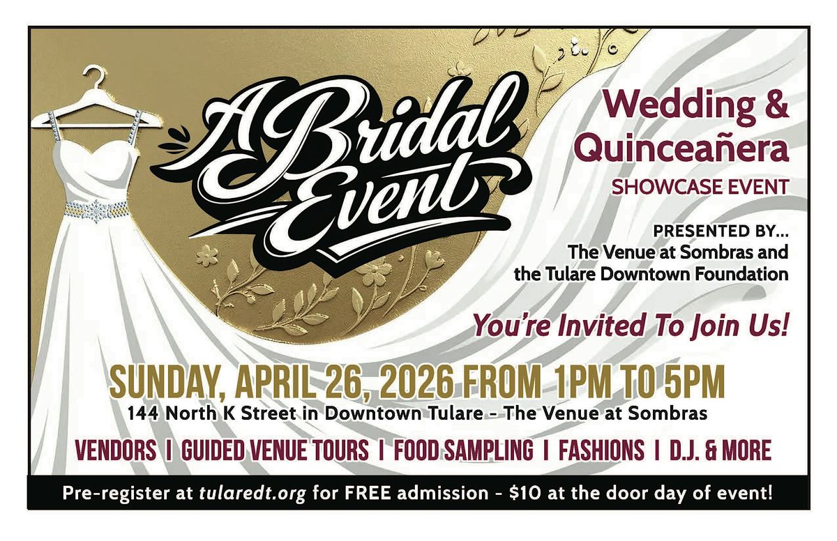 Imagine your guests stepping into a world they didn't know existed in Tulare. Visit the newly remodeled Venue at Sombras and take a tour to see the beautiful hardwood, marble and hand-crafted accoutrements available for your enjoyment. Visit with vendors who experienced in planning and working with weddings, bridal parties, Quinceañeras and birthday parties. Check out the selection of dresses, rental equipment and get insights into how you can have the perfect event. This is a wedding and party planning event you'll want to attend!