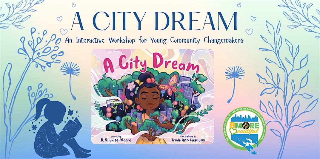 This event will begin with a special live reading of the picture book A City Dream by its author, B. Sharise Moore. Hearing the story firsthand sets the tone for the day, inspiring youth to think boldly about what their communities can become and how their voices matter in shaping that future. Held in congruence with the Baltimore City Mayor’s Office Spring Clean Up Initiative, this interactive workshop connects imagination with real community action. We hope to encourages young people to see themselves as active participants in building a cleaner, safer, and more vibrant Baltimore. Following the reading, participants will rotate through engaging, hands-on “Dream Stations” designed to spark creativity, teamwork, environmental stewardship, and civic pride. By the end of the workshop, participants will leave empowered, knowing that with imagination, collaboration, and action, every community can grow into the city of its dreams. Spots are limited, so we encourage families to sign up early to take part in this unique experience that brings together creativity, literacy, and civic engagement.