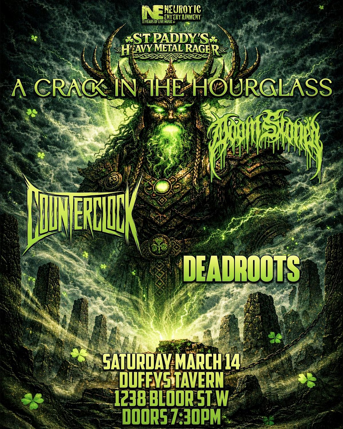Get ready to dive into some heavy vibes this St. Paddys with A Crack in the Hourglass, Doom Stoned, Counterclock & Deadroots live and loud!About this Event