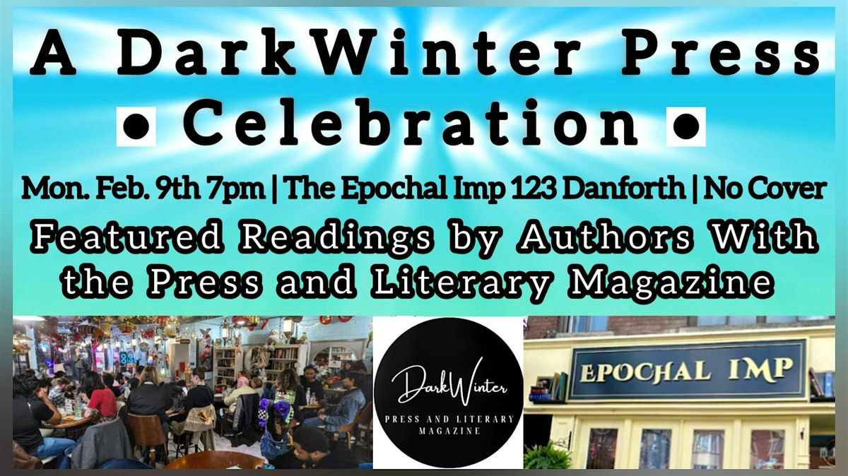 Join us for a celebration of DarkWinter Literary Magazine and Press! Monday, Feb. 9th, at 7pm, come on out to the Epochal Imp at 123 Danforth. Toronto (right by Broadview Subway Station) to hear readings by authors who have published books with the press and those who have published short work in the literary magazine, plus an on-stage interview with Editor-in-Chief Suzanne Craig-Whitock =) Hosted by Paul Edward Costa.