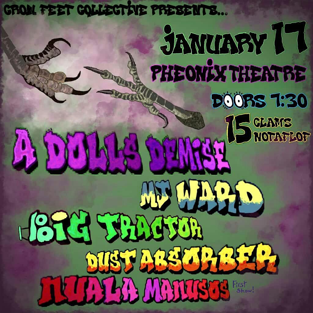 A Dolls Demise, MJ Ward, Big Tractor, Dust Absorber and Nuala Mailusos at the Phoenix on Saturday 1/17/26! Tickets on sale now.
