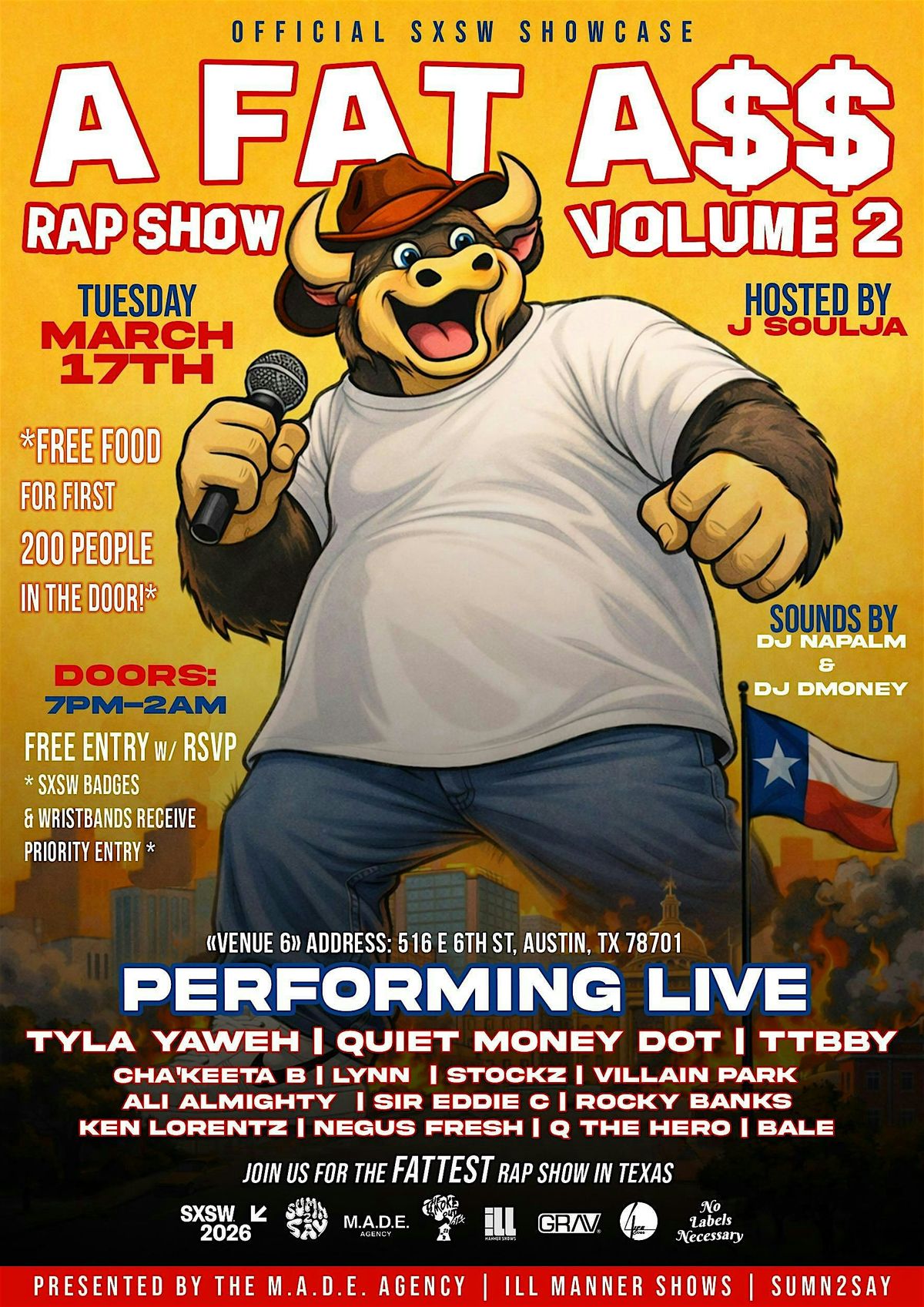 A FAT A$$ RAP SHOW - OFFICIAL SXSW SHOWCASE is where it's at! Powered by The M.A.D.E. Agency & iLL Manner Shows