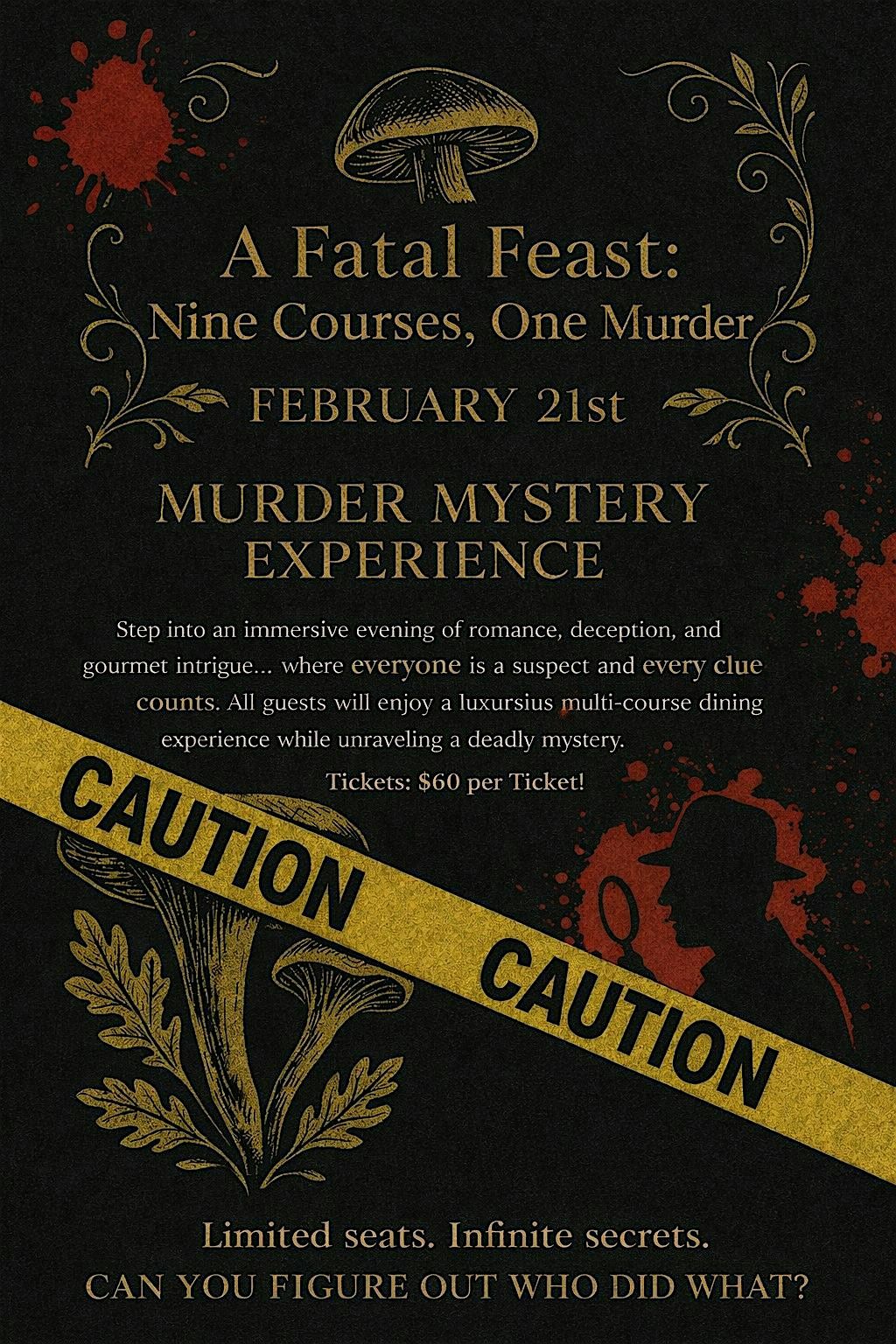 A Fatal Feast: Nine Courses, One MurderWelcome to Fatal Fungi, an immersive nine-course M**der mystery where the hidden world of mushrooms becomes deadly.
