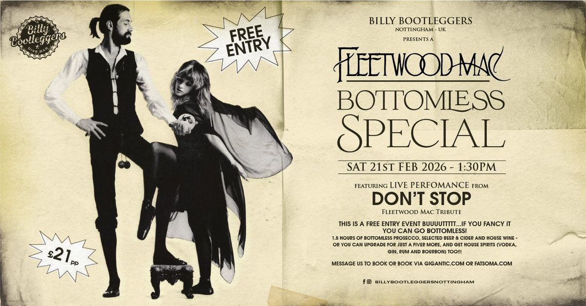 With LIVE performance fromDON'T STOP - Tribute ActThis is a free entry event buuuut, if you like, you can go BOTTOMLESS!!!