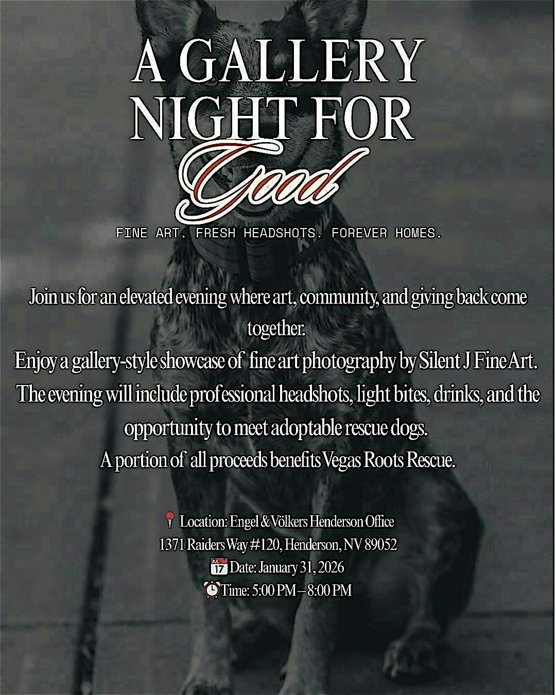 Get ready for an exciting evening filled with amazing art, fresh headshots and puppy snuggles. Whether you're an art lover, dog lover, real estate professional or just looking for an impactful night out, this event is perfect to unwind and enjoy some inspiring work.