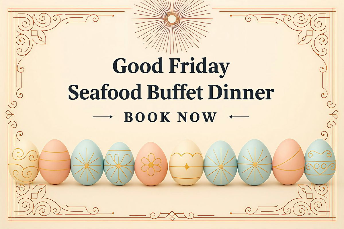 This Good Friday, step into the refined glamour of the 1920s and indulge in an opulent Seafood Dinner Buffet set within our iconic Art Deco surrounds.