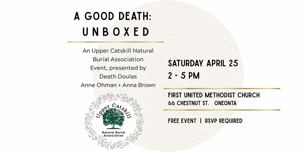 The Upper Catskill Natural Burial Association is excited to present A GOOD DEATH: UNBOXED, a 3-hour event exploring all aspects of death planning.