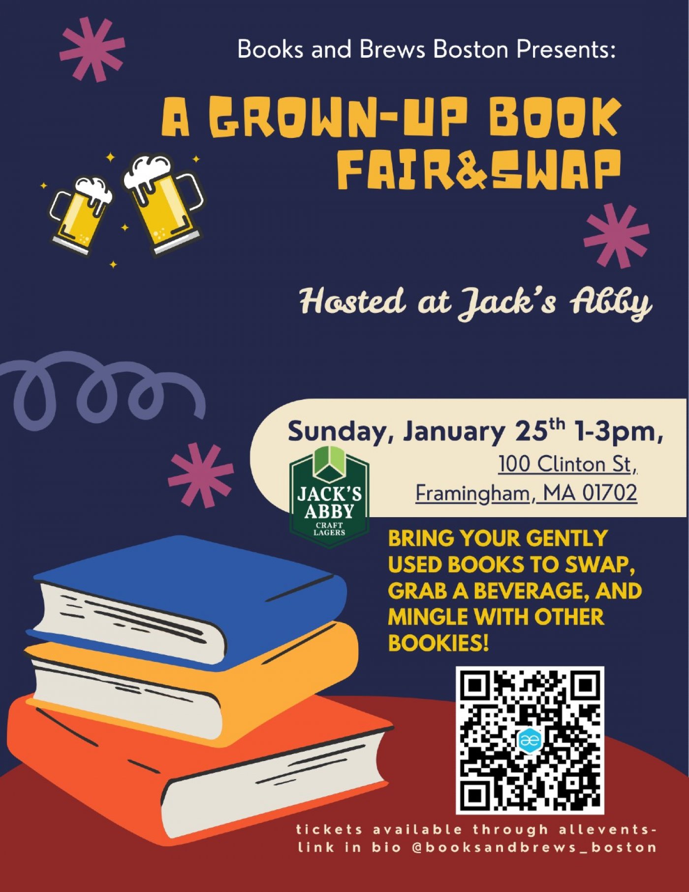 Happy New Year, Bookies! The January 11th event has sold out, but never fear, we have another awesome swap opportunity coming your way! Books and Brews Boston is hosting a grown-up book fair and swap at Jack's Abby in Framingham! If you came to the last Jack's Abby swap, it's the same deal...bring a gently used book (or books) to swap sip on a beverage and shop new books and mingle with other bookies. If you missed us in October, don't miss us again in January! Can't wait to see you there!