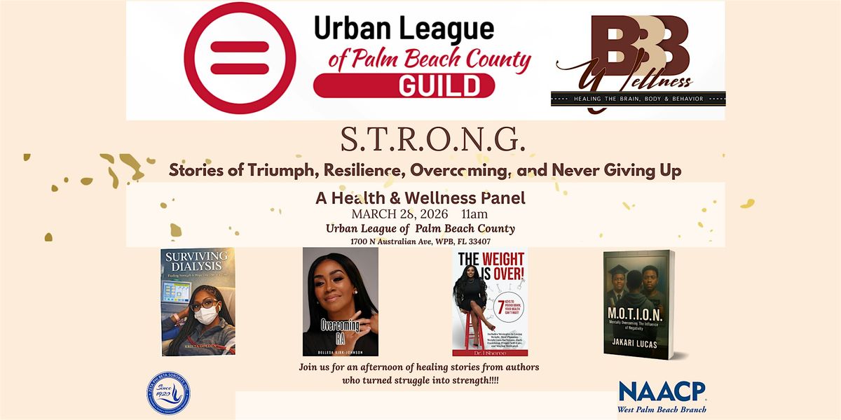 3 B Wellness will host four authors as they share stories of triumph, resilience, overcoming, and never giving up. STRONG healing stories... enjoy an afternoon celebrating healing. This panel is hosted and moderated by 3 B Wellness and collaboratively presented by the Urban League of Palm Beach County, ULPBC Guild, NAACP, and the Delta Epsilon Zeta Chapter of Zeta Phi Beta Sorority, Inc.
