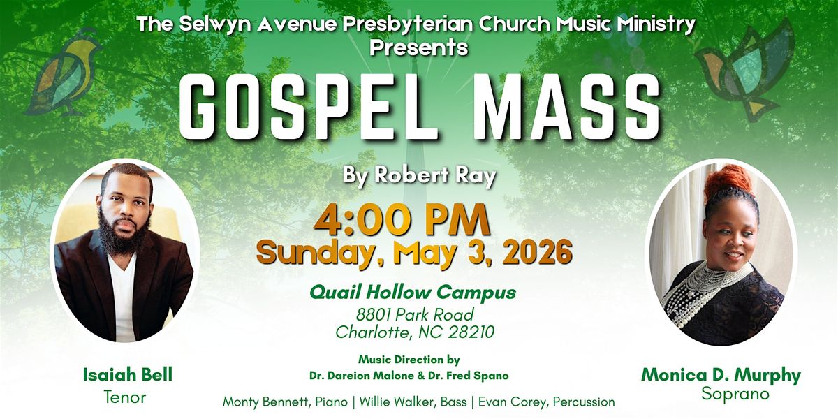 The program centers on Gospel Mass by Robert Ray—a vibrant choral work inspired by the musical traditions of the Black church, performed with guest soloists Isaiah Bell and Monica D. Murphy and accompanied by a live band.