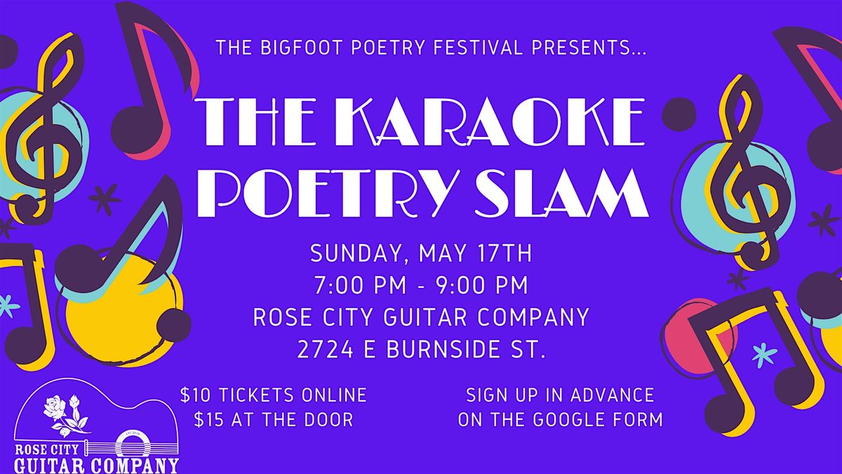 Happening on Sunday, May 17th. The Karaoke Slam is a Fundraiser for the Bigfoot Poetry Festival. Tickets are $10 Pre-Sale and $15 at the door.