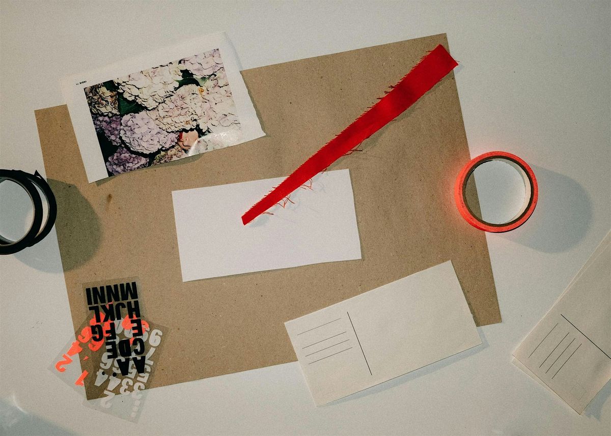 Materials provided: Prepared postcard stock, a selection of collage materials, glue, scissors and cutting tools, pens/markers, stamping tools etc. Please feel inspired to bring your own as well.