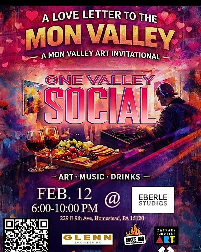 This One Valley Social event is more than an art show—it’s a love letter to the place we call home. This collaborative Mon Valley Art Invitational brings together talented local artists, music, food, drinks and a creative social atmosphere designed to connect community members, creators, and art lovers!!