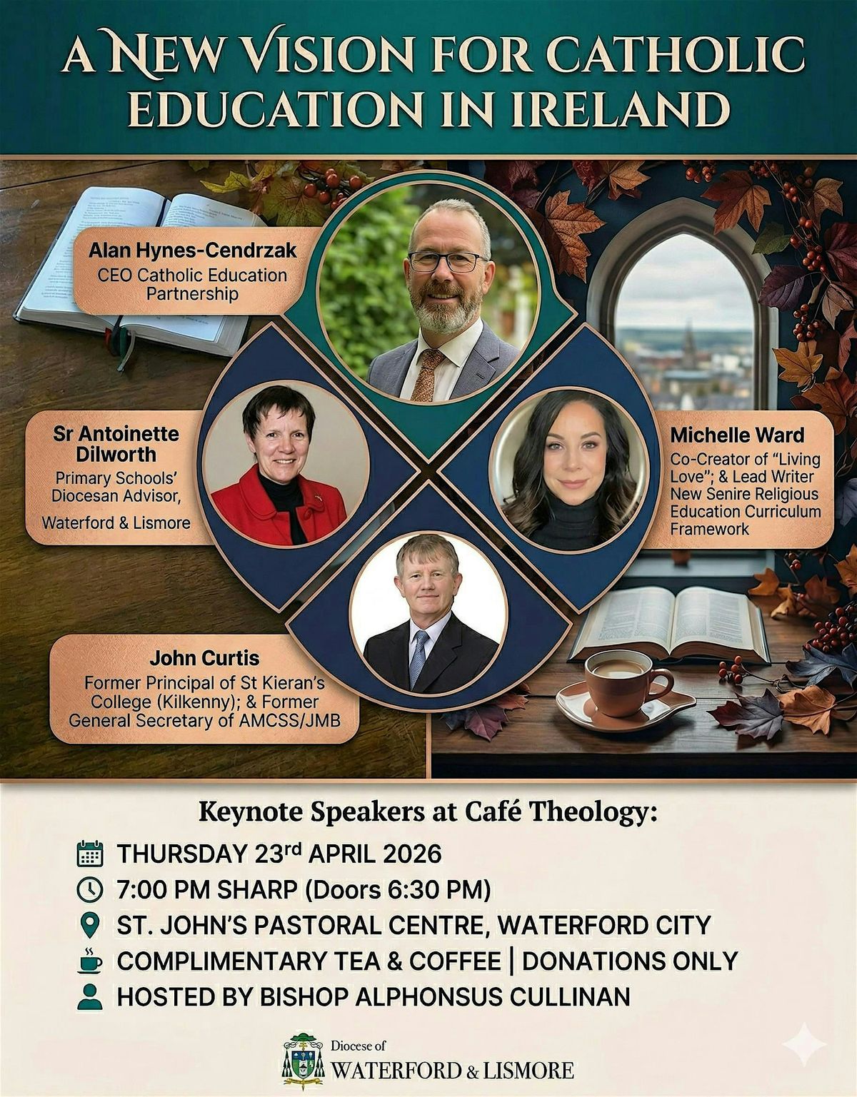 The Diocese of Waterford & Lismore warmly invites you to an important evening exploring the future of Catholic education and how we can work together to foster a strong Catholic ethos in building communities of faith, inclusion, and excellence.